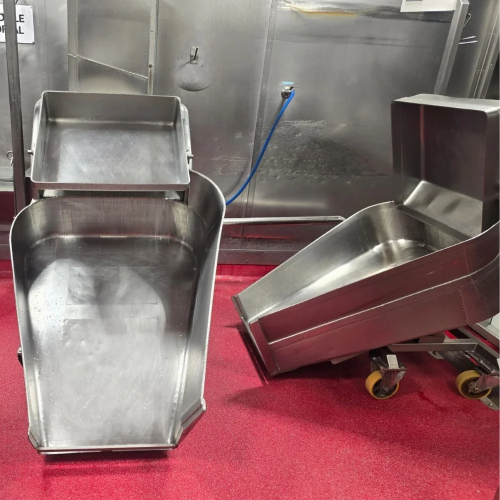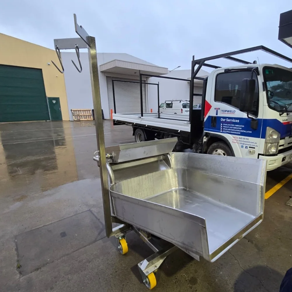 Each Gut Barrow is built using custom stainless steel fabrication, allowing Topweld to tailor dimensions, load capacity, and ergonomic features to the unique requirements of your facility. The corrosion-resistant stainless steel construction ensures longevity under frequent washdown and daily use, making it a dependable solution for modern meat processing operations.