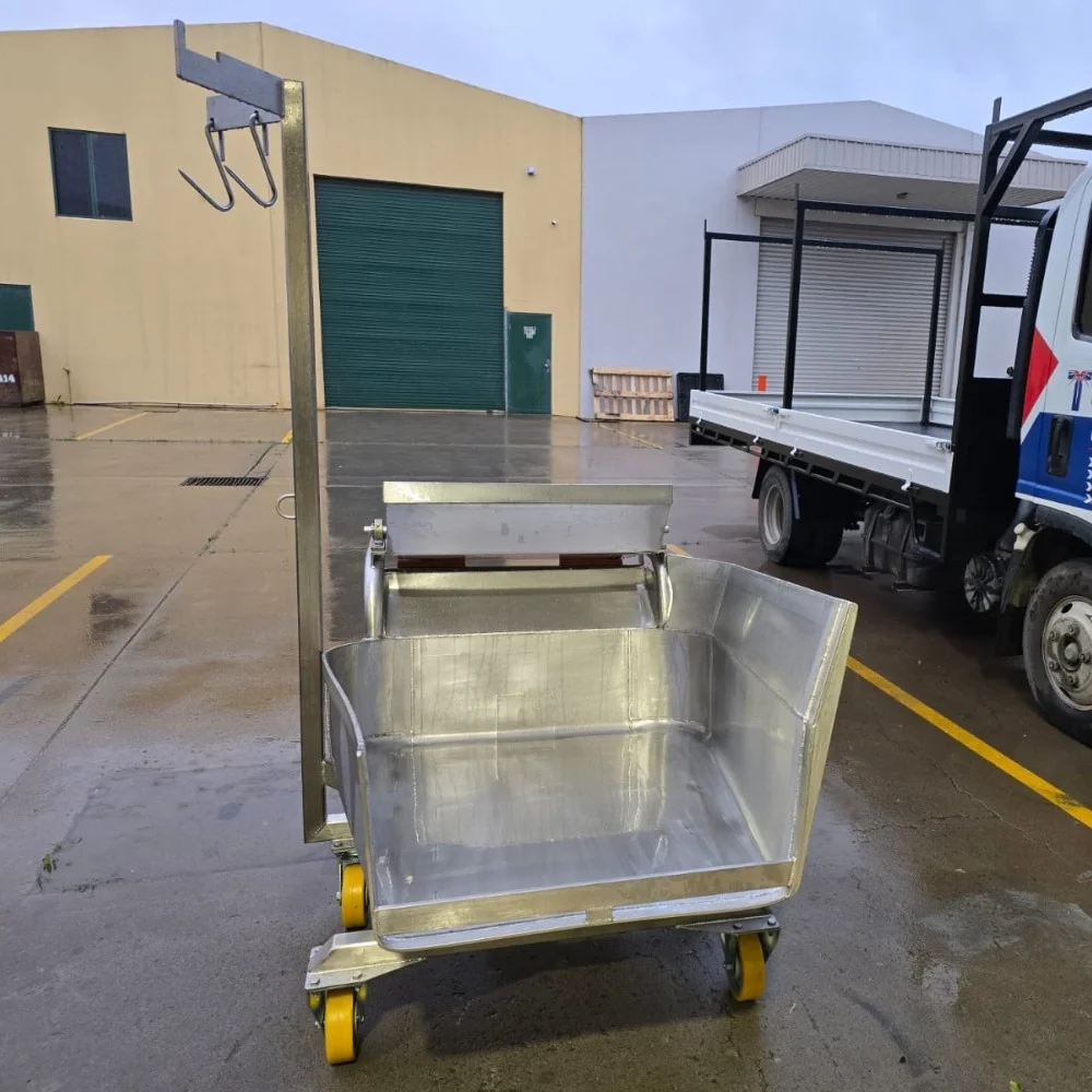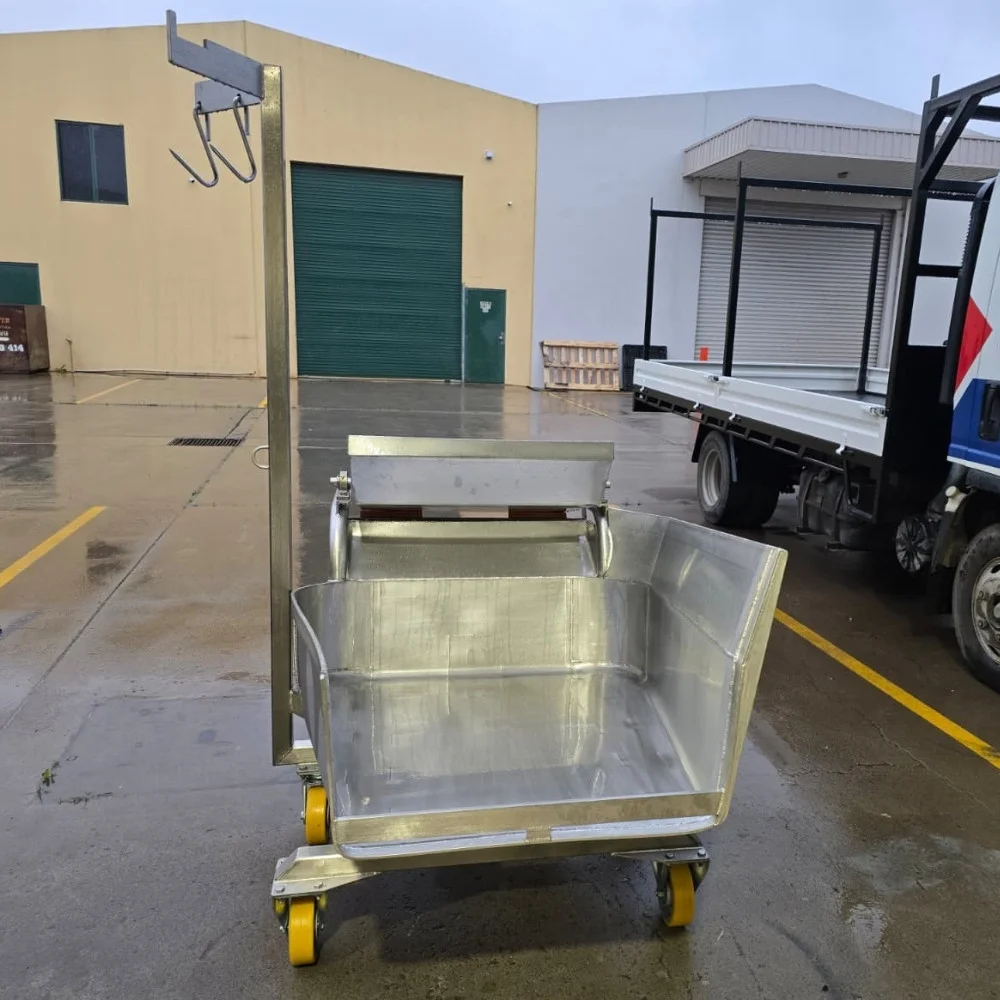 The Gut Barrow is a robust stainless steel cart designed for efficient transport of by-products in abattoirs and meat processing plants across Australia. Built for hygiene, durability, and ease of handling, it improves workflow and supports sanitation standards.
